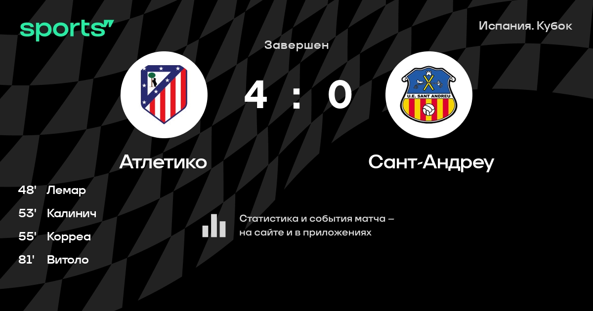 Адан - Люка Эрнандес, Савич, Мойя, Арьяс - Витоло, Сауль, Коке, Корреа - Желсон Мартинш, КалиничЗапасные: Облак, Монтеро, Родри Эрнандес, Лемар, Парти, Гарсес, Хоакин Муньос