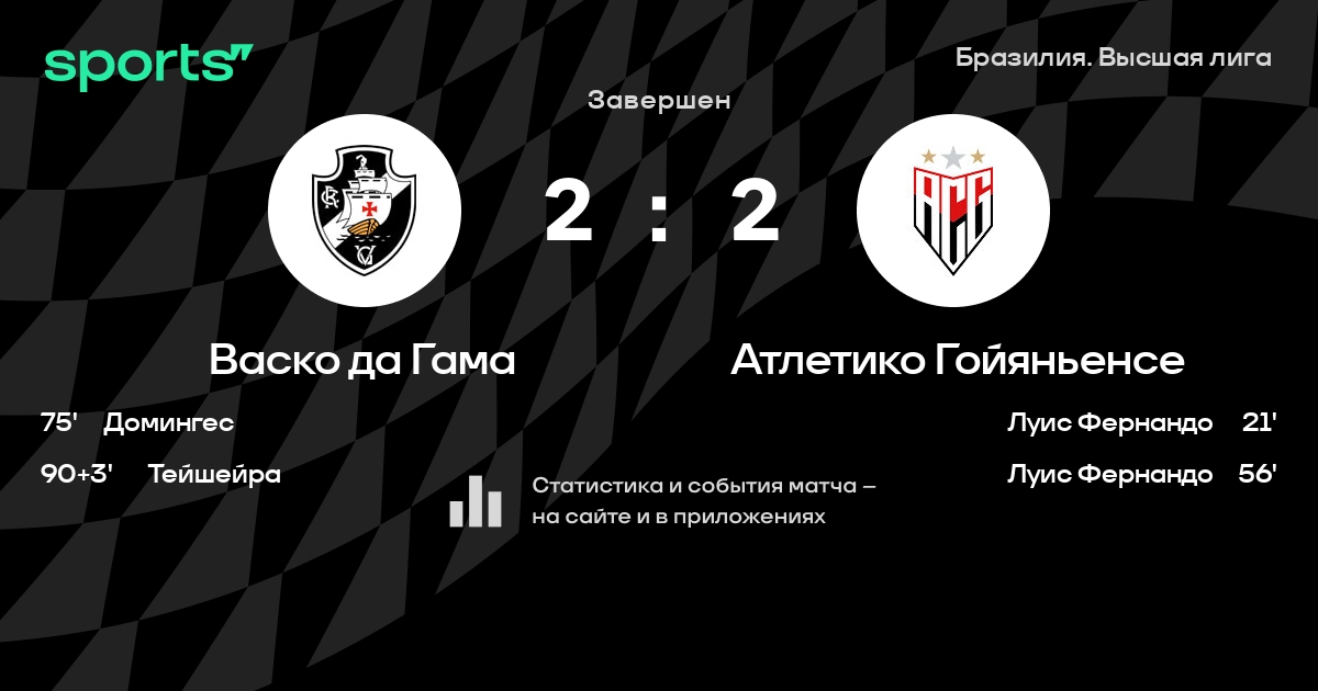Результат прошлой игры в турнире «Серия A»: Коринтианс – Васко да Гама 3:1. После 35 туров Васко да Гама набирает 43 очков и занимает 11 место в турнире. Лучший бомбардир команды – Пабло Вехетти: он забил 9 в 32 матчах. Васко да Гама проигрывает в 4 последних матчах в рамках турнира «Серия A». Васко да Гама пропускает в 5 последних матчах в турнире «Серия A». В последних 5 играх Васко да Гама забивает 4 голов. В последних 5 играх Васко да Гама пропускает 12 голов.