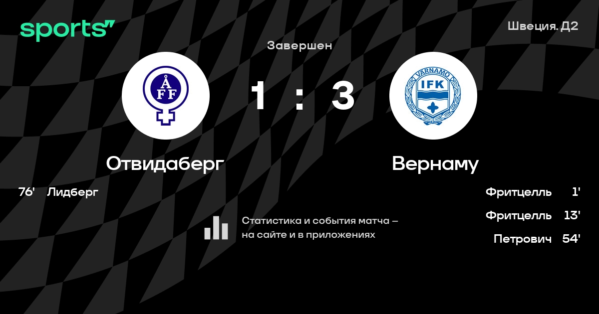 | 16 | Отвидаберг | 30 | 6 | 5 | 19 | 22 | 58 | -36 | 23 | ||