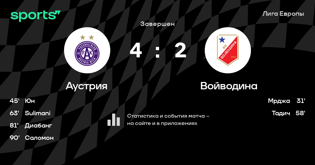 Альмер - Кляйн, Ортлехнер, Бонк, Воржишек, Драгович - Юнузович, Баумгартлингер, Юн, Ачимович - Окоти