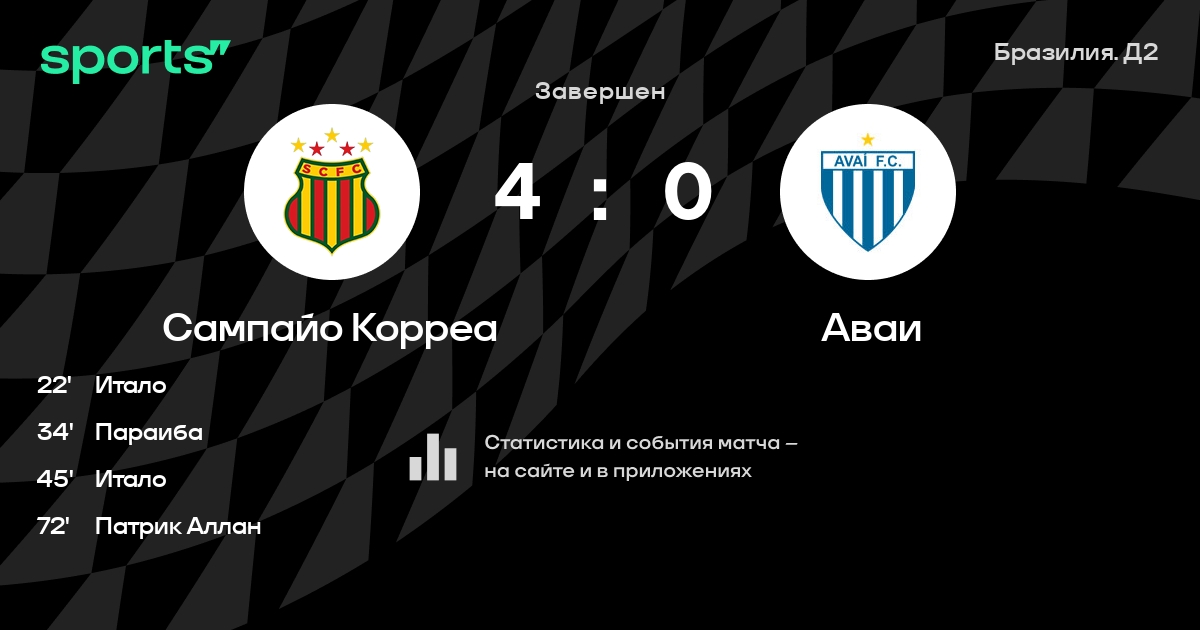 Сампайо Корреа – Аваи: Аваи побеждает в 4 последних очных матчах