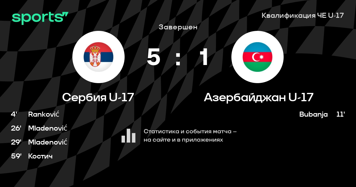 | 2 | Сербия U-17 | 3 | 2 | 0 | 1 | 5 | 1 | +4 | 6 | ||
