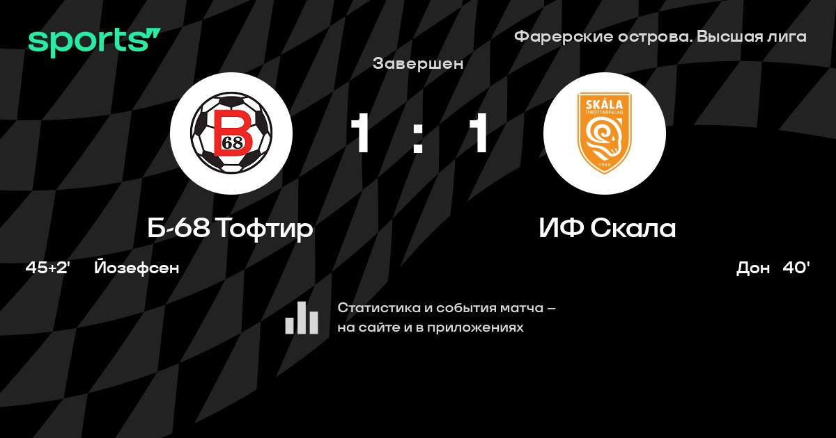 Результат прошлой игры в турнире «Высшая лига»: ИФ Фуглафьордур – Б-68 Тофтир 1:3. После 24 туров Б-68 Тофтир набирает 17 очков и занимает 9 место в турнире. Лучший бомбардир команды – Вильям Клайн: он забил 5 в 23 матчах. Б-68 Тофтир пропускает в 6 последних матчах в турнире «Высшая лига». В последних 5 играх Б-68 Тофтир забивает 4 голов. В последних 5 играх Б-68 Тофтир пропускает 9 голов.