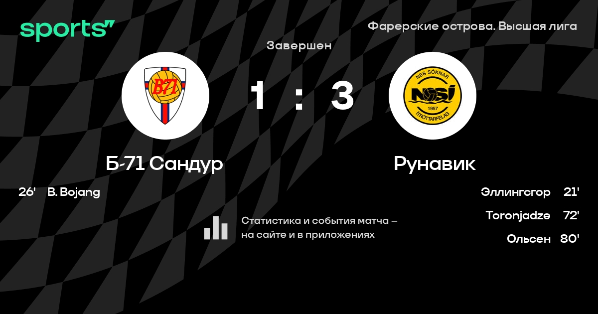 Ганго - Фредериксберг, Йонсен - уй Ламбанум, Фредериксберг, Мортенсен, Hansen, Эллингсгор - Якобсен, Ольсен, á LakjuniЗапасные: , Миккельсен, Gregersen, Danielsen, Toronjadze