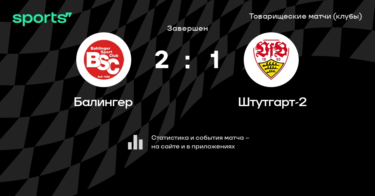 Результат прошлой игры в турнире «Товарищеские матчи (клубы)»: TSG Hoffenheim II – Балингер 1:2. В 3 последних матчах в турнире «Товарищеские матчи (клубы)» Балингер обязательно забивает. Балингер пропускает в 4 последних матчах в турнире «Товарищеские матчи (клубы)». В последних 5 играх Балингер забивает 11 голов. В последних 5 играх Балингер пропускает 12 голов.