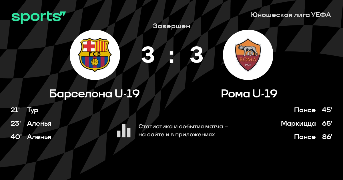 Трансляция Барселона U-19 - Рома U-19