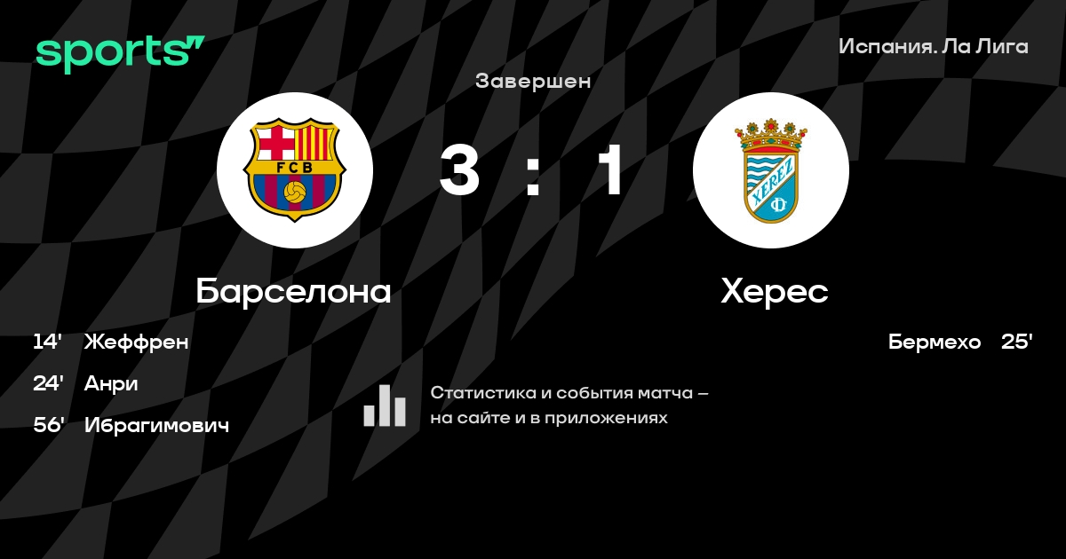 Вальдес - Пуйоль, Чигринский, Максвелл, Маркес - Туре, Кейта, Хави - Анри, Ибрагимович, ЖеффренЗапасные: Пинто, Пике, Бускетс, Педро, Месси, Кркич