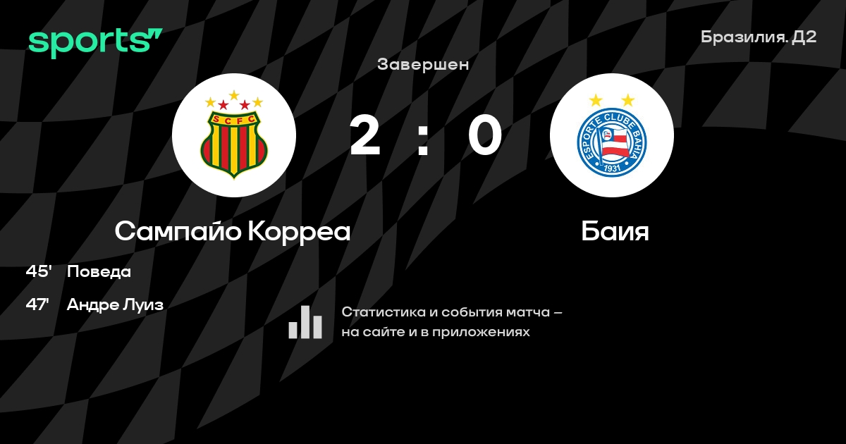 Сампайо Корреа – Баия: Баия не проигрывает в 5 последних матчах против этого соперника в турнире «Серия B»