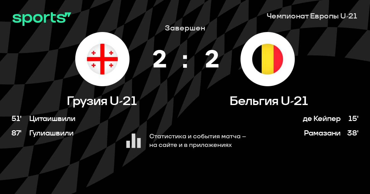Результат прошлой игры в турнире «Чемпионат Европы U-21»: Грузия U-21 – Португалия U-21 2:0. В последних 5 играх Грузия U-21 забивает 7 голов. В последних 5 играх Грузия U-21 пропускает 4 голов.