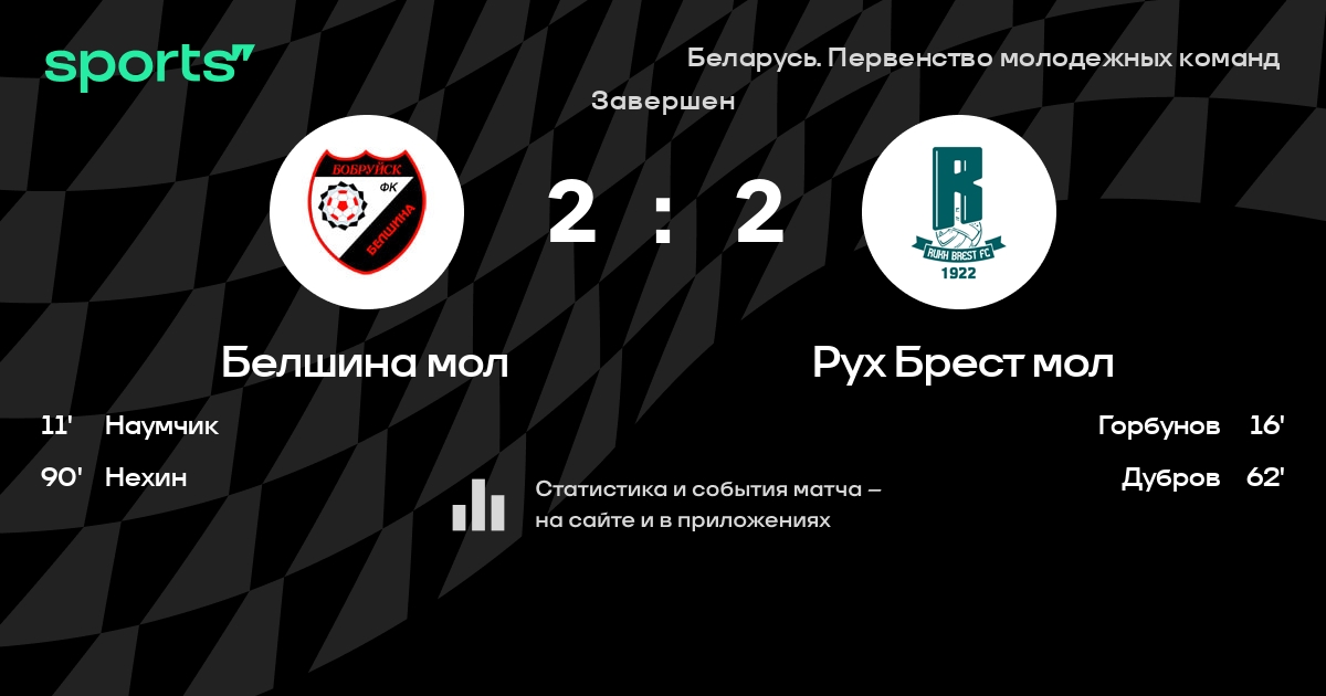 | 7 | Рух Брест мол | 30 | 12 | 6 | 12 | 53 | 54 | -1 | 42 | ||