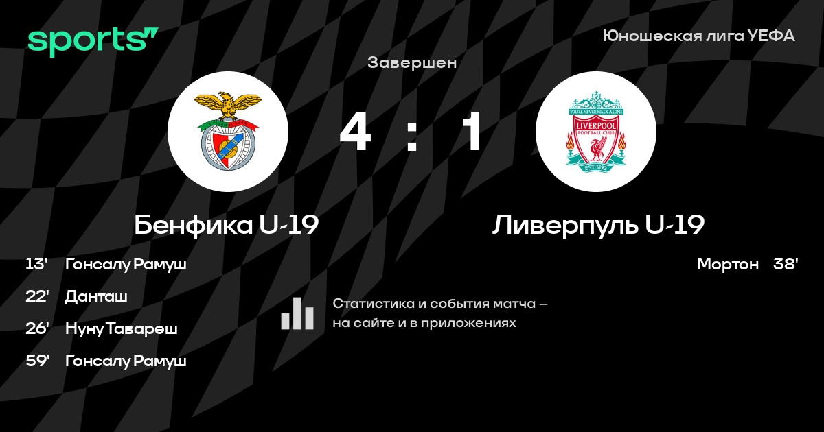 Трансляция Бенфика U-19 - Ливерпуль U-19