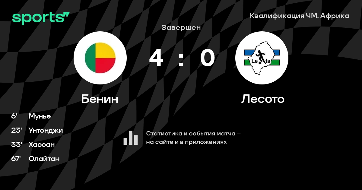 Бенин – Лесото: Бенин не пропускает в 3 последних матчах против этого соперника