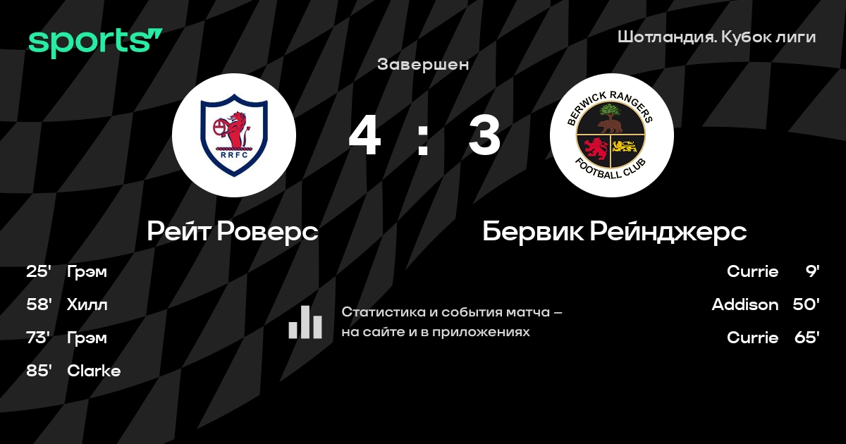 Трансляция Рейт Роверс - Бервик Рейнджерс