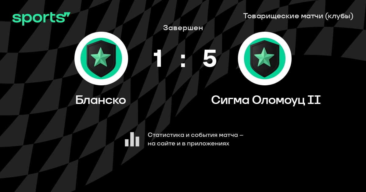Бланско – Сигма Оломоуц II: Сигма Оломоуц II забивает в 5 из 6 последних матчей против этого соперника
