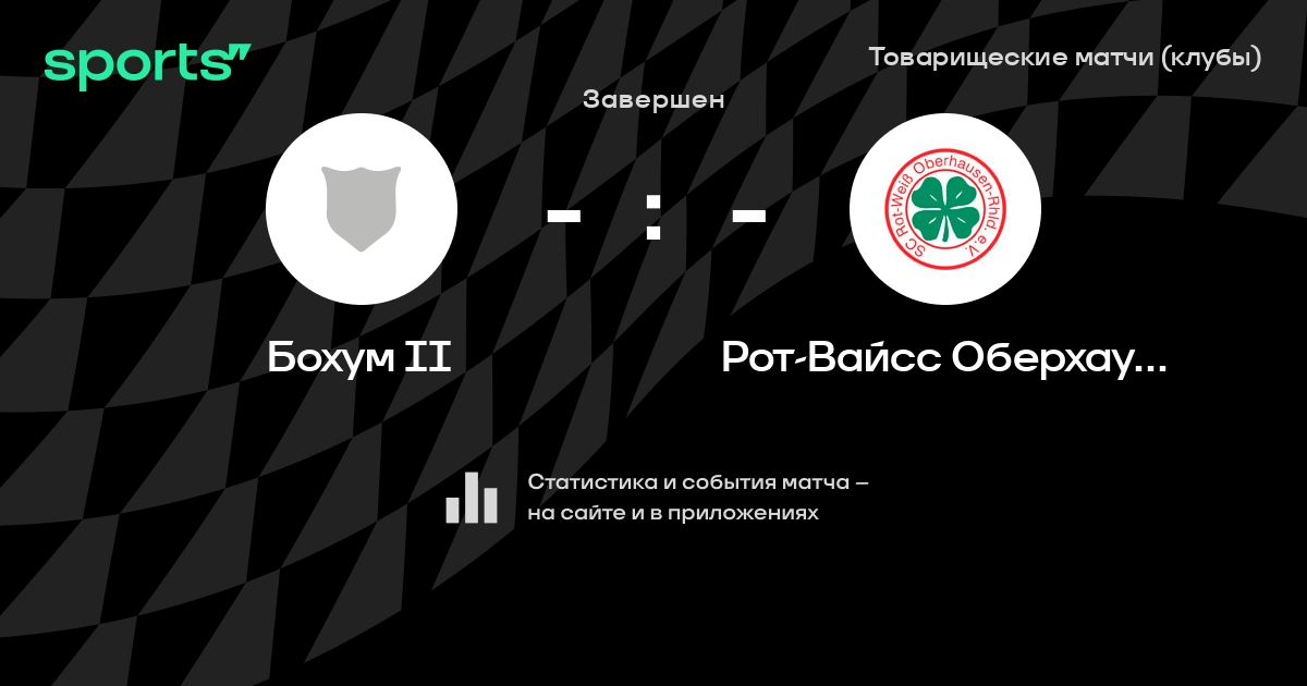 Результат прошлой игры в турнире «Товарищеские матчи (клубы)»: Вальдхоф – Рот-Вайсс Оберхаузен 0:0. Рот-Вайсс Оберхаузен не может выиграть в 3 последних матчах в рамках турнира «Товарищеские матчи (клубы)». В последних 5 играх Рот-Вайсс Оберхаузен забивает 5 голов. В последних 5 играх Рот-Вайсс Оберхаузен пропускает 5 голов.