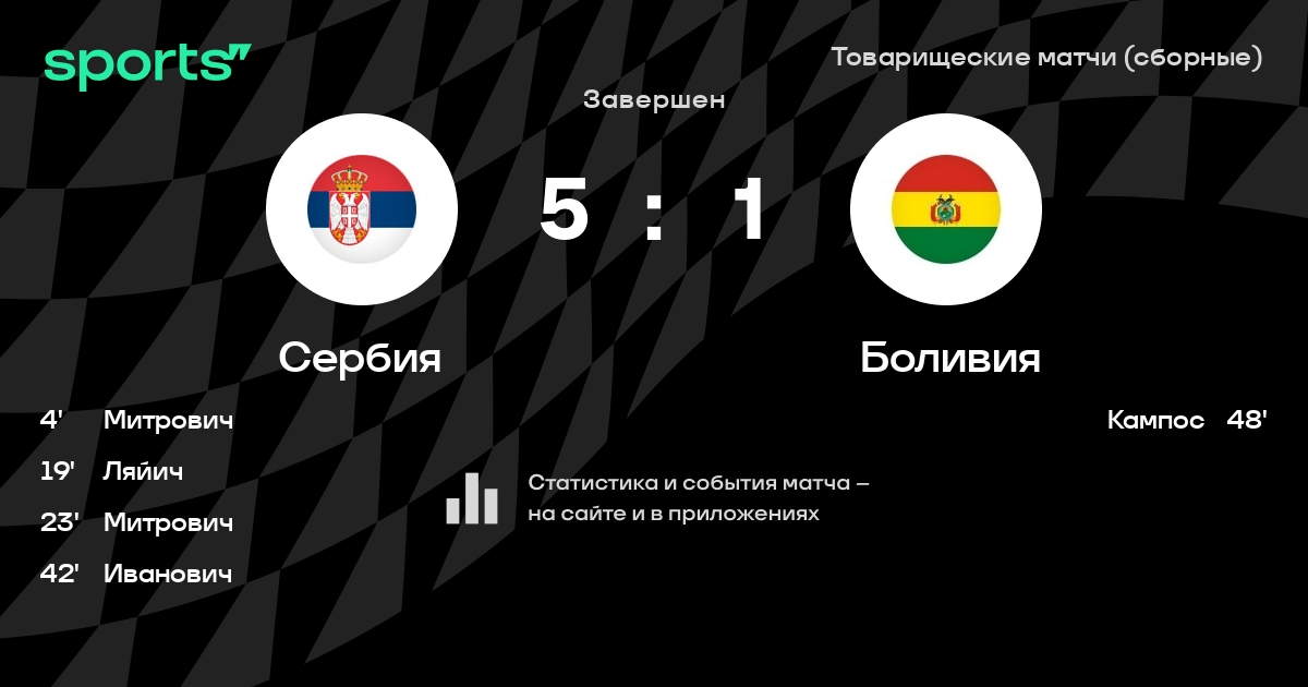 Товарищеские матчи. Сербия разгромила Боливию, Испания обыграла Тунис