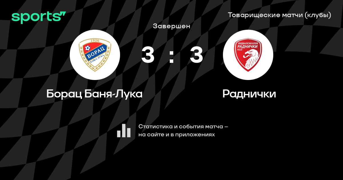 Раднички не выигрывает в 5 последних матчах в гостях в турнире «Товарищеские матчи (клубы)»