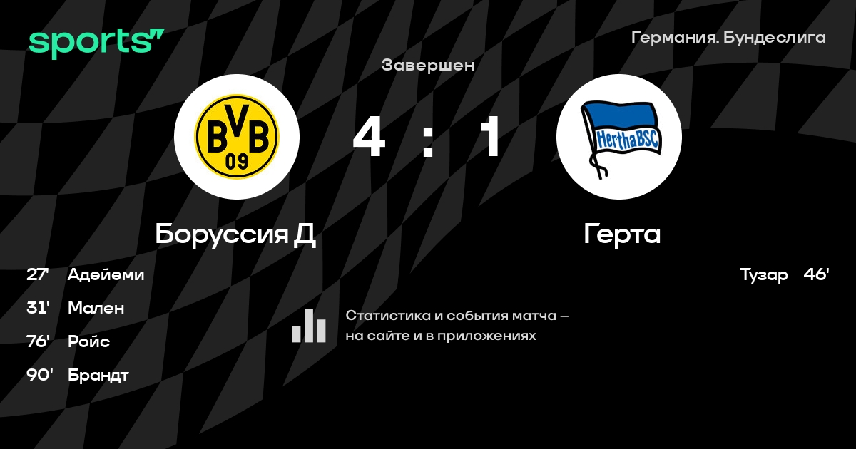 Боруссия Д – Герта: Боруссия Д забивает в 15 последних матчах против этого соперника