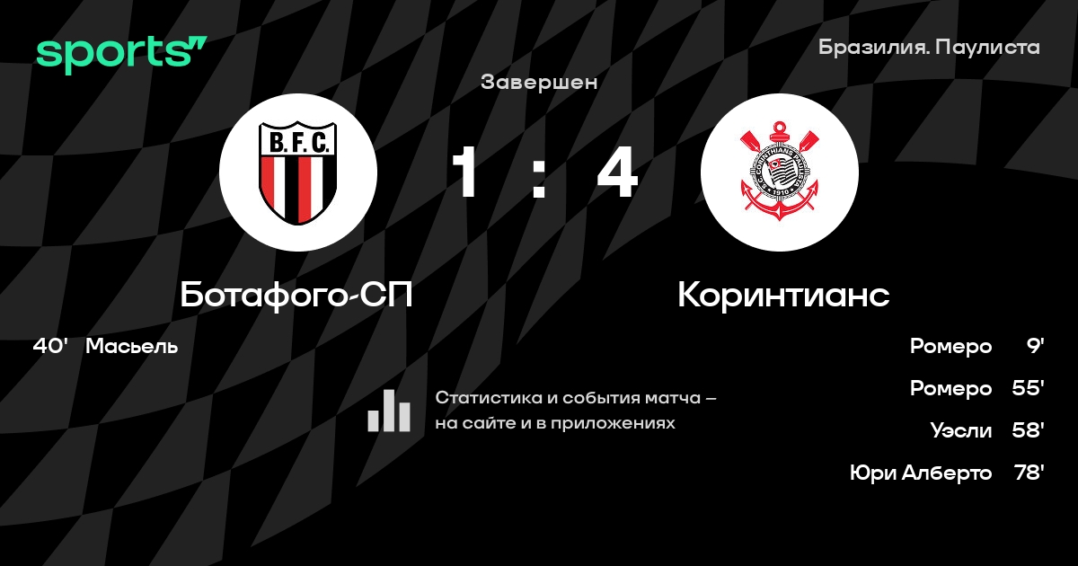 Ботафого-СП – Коринтианс: Коринтианс не проигрывает в 16 из 17 последних матчей против этого соперника