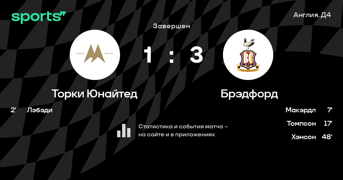 Торки Юнайтед - Брэдфорд: положение в турнире
