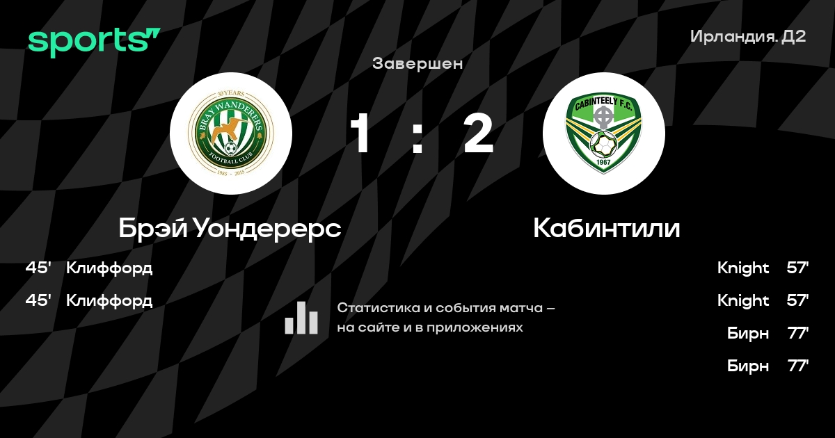 Брэй Уондерерс – Кабинтили: Брэй Уондерерс не пропускает в 3 последних матчах против этого соперника