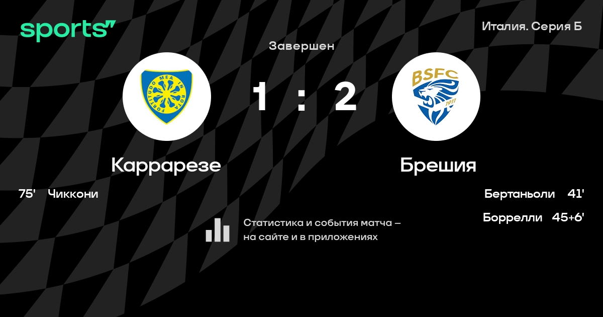 Результат прошлой игры в турнире «Серия B»: Брешия – Катандзаро 2:3. После 23 туров Брешия набирает 25 очков и занимает 15 место в турнире. Лучший бомбардир команды – Габриэль Мончини: он забил 4 в 14 матчах. Брешия не может выиграть в 11 последних матчах в рамках турнира «Серия B». В 5 последних матчах в турнире «Серия B» Брешия обязательно забивает. Брешия пропускает в 5 последних матчах в турнире «Серия B». В последних 5 играх Брешия забивает 9 голов. В последних 5 играх Брешия пропускает 10 голов.