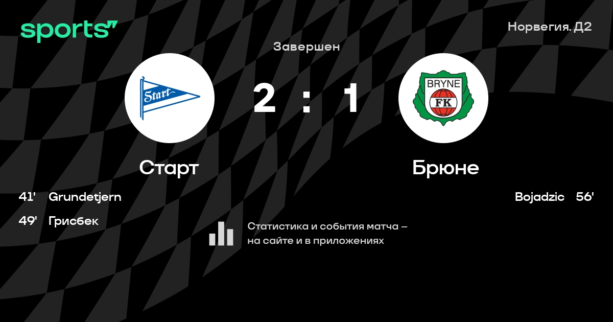 Результат прошлой игры в турнире «Первый дивизион»: Саннес Ульф – Старт 0:4. После 25 туров Старт набирает 30 очков и занимает 11 место в турнире. Лучший бомбардир команды – Эйрик Шульце: он забил 8 в 25 матчах. Старт побеждает в 3 последних матчах в рамках турнира «Первый дивизион». В 9 последних матчах в турнире «Первый дивизион» Старт обязательно забивает. В последних 5 играх Старт забивает 14 голов. В последних 5 играх Старт пропускает 6 голов.