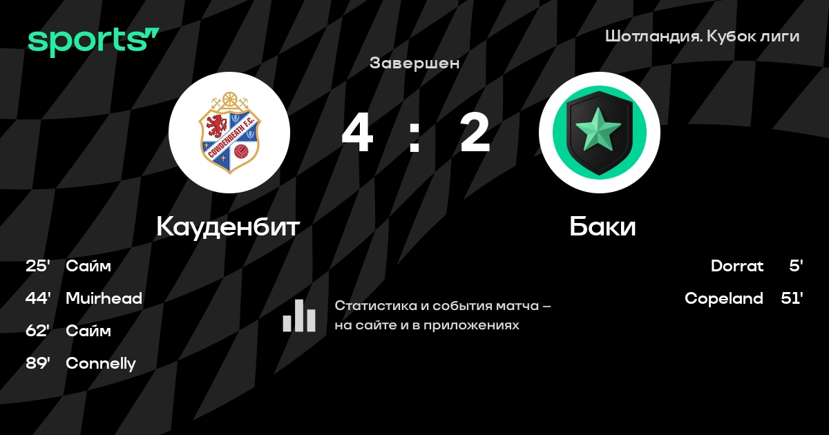 Макгерн - Сайм, Rumsby, Pyper - Резерфорд, Маллен, Миллер, Бьюкенен, Макинэлли - Уиттакер, MuirheadЗапасные: Макговерн, Kellichan, Swann, Thomson, Turnbull, Connelly