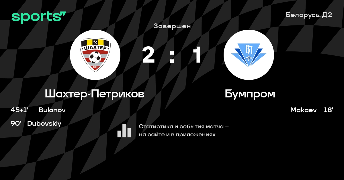 Результат прошлой игры в турнире «Первая лига»: Бумпром – Островец 3:1. После 27 туров Бумпром набирает 40 очков и занимает 9 место в турнире. Лучший бомбардир команды – Дмитрий Халимончиков: он забил 10 в 27 матчах. Бумпром не проигрывает в 5 последних матчах в рамках турнира «Первая лига». В последних 5 играх Бумпром забивает 5 голов. В последних 5 играх Бумпром пропускает 2 голов.