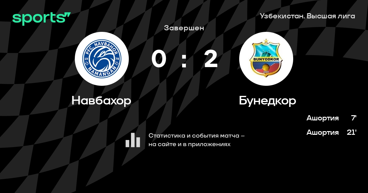 Результат прошлой игры в турнире «ПФЛ»: Бунедкор – Насаф 2:2. После 24 туров Бунедкор набирает 40 очков и занимает 6 место в турнире. Лучший бомбардир команды – N. Abdusalomov: он забил 6 в 18 матчах. Бунедкор не может выиграть в 3 последних матчах в рамках турнира «ПФЛ». В 18 последних матчах в турнире «ПФЛ» Бунедкор обязательно забивает. Бунедкор пропускает в 3 последних матчах в турнире «ПФЛ». В последних 5 играх Бунедкор забивает 8 голов. В последних 5 играх Бунедкор пропускает 13 голов.
