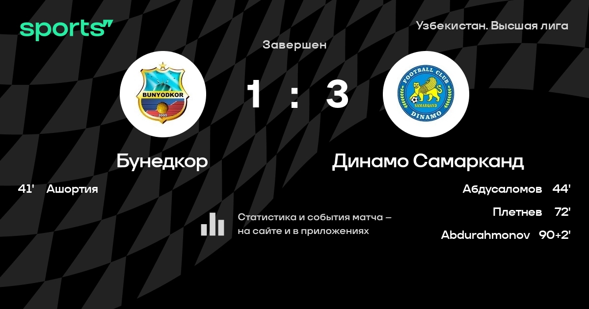 Результат прошлой игры в турнире «ПФЛ»: Пахтакор Ташкент – Бунедкор 4:2. После 27 туров Бунедкор набирает 46 очков и занимает 5 место в турнире. Лучший бомбардир команды – Имеда Ашортия: он забил 7 в 29 матчах. В 21 последних матчах в турнире «ПФЛ» Бунедкор обязательно забивает. В последних 5 играх Бунедкор забивает 10 голов. В последних 5 играх Бунедкор пропускает 9 голов.