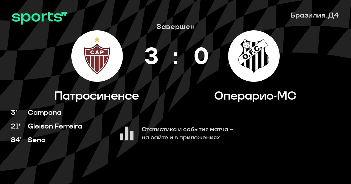 Патросиненсе – Операрио Кампу-Гранди: Операрио Кампу-Гранди забивает в 3 последних матчах против этого соперника