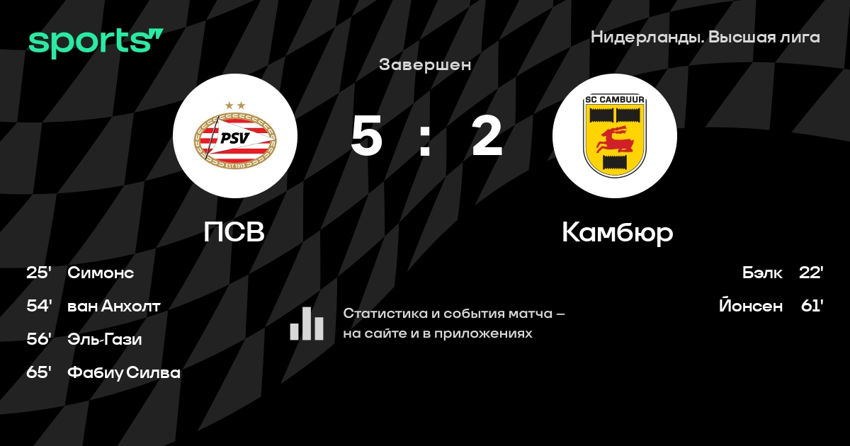 ПСВ – Камбюр: Камбюр забивает в 5 последних матчах против этого соперника