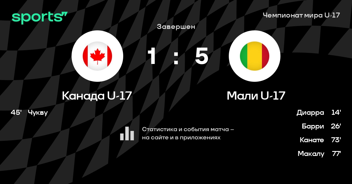В последних 5 играх Канада U-17 забивает в среднем 1.20 гола за игру