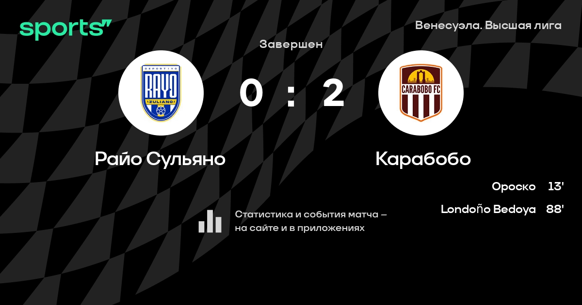 Райо Сульяно – Карабобо: Карабобо забивает в 3 последних матчах против этого соперника