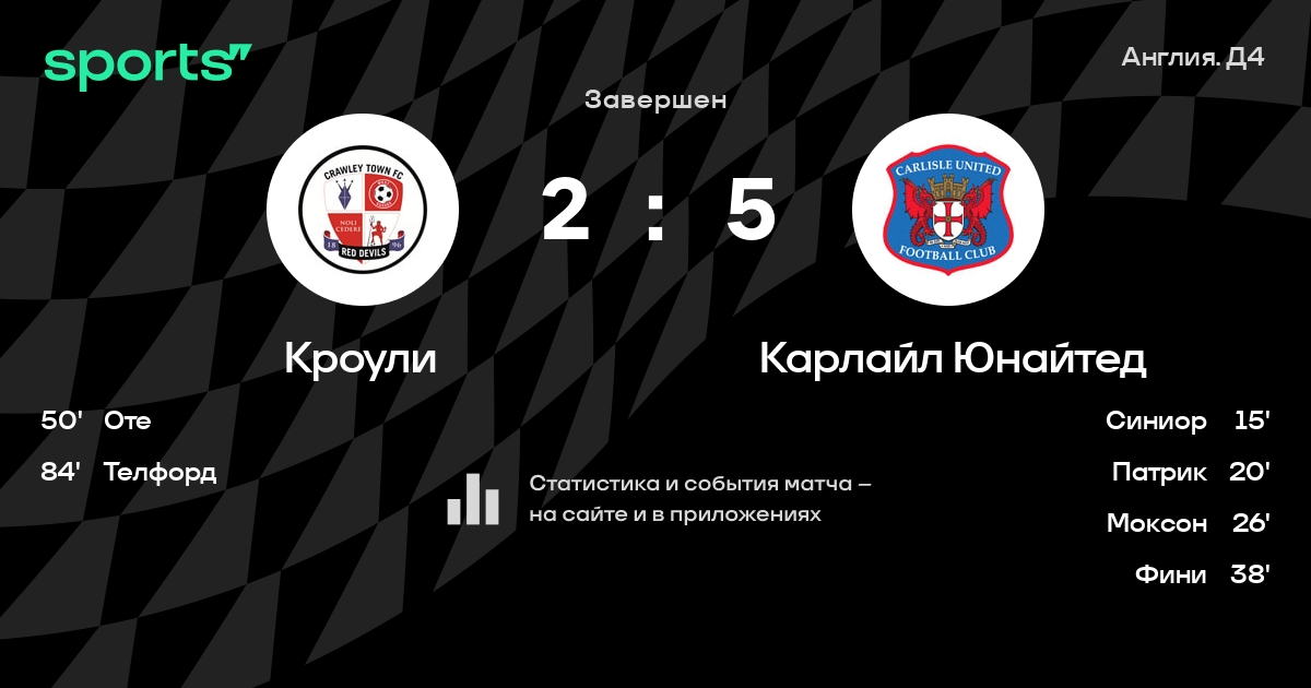 Кроули – Карлайл Юнайтед: Карлайл Юнайтед забивает в 5 последних матчах против этого соперника