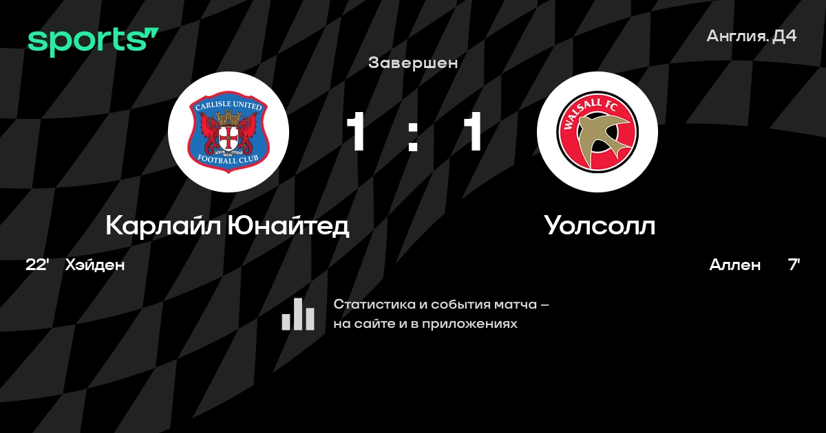 Карлайл Юнайтед – Уолсолл: Уолсолл не проигрывает в 5 последних матчах против этого соперника
