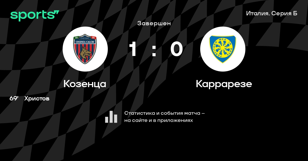 Результат прошлой игры в турнире «Серия B»: Сампдория – Козенца 1:0. После 24 туров Козенца набирает 18 очков и занимает 20 место в турнире. Лучший бомбардир команды – T. Fumagalli: он забил 4 в 19 матчах. Козенца проигрывает в 3 последних матчах в рамках турнира «Серия B». Козенца пропускает в 13 последних матчах в турнире «Серия B». В последних 5 играх Козенца забивает 4 голов. В последних 5 играх Козенца пропускает 9 голов.