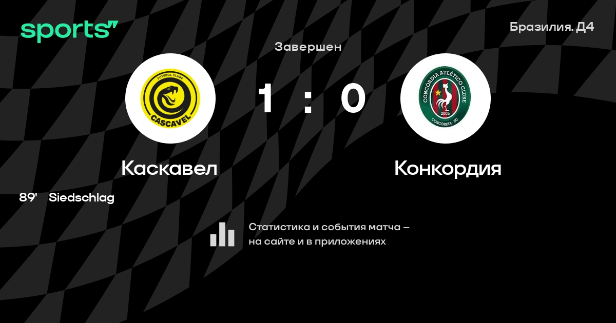 Результат прошлой игры в турнире «Серия D»: Нову-Амбургу – Конкордия 2:1. После 9 туров Конкордия набирает 14 очков и занимает 1 место в турнире. Лучший бомбардир команды – Marcos Vinicius: он забил 4 в 18 матчах. В последних 5 играх Конкордия забивает 5 голов. В последних 5 играх Конкордия пропускает 6 голов.