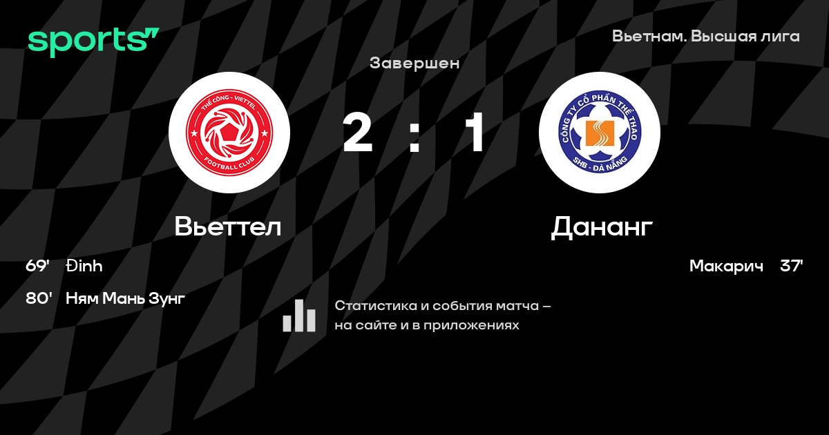 Результат прошлой игры в турнире «Высшая лига»: Фудонг – Вьеттел 1:1. После 6 туров Вьеттел набирает 12 очков и занимает 4 место в турнире. Лучший бомбардир команды – Лукао: он забил 3 в 6 матчах. Вьеттел не проигрывает в 10 последних матчах в рамках турнира «Высшая лига». В 17 последних матчах в турнире «Высшая лига» Вьеттел обязательно забивает. В последних 5 играх Вьеттел забивает 9 голов. В последних 5 играх Вьеттел пропускает 2 голов.