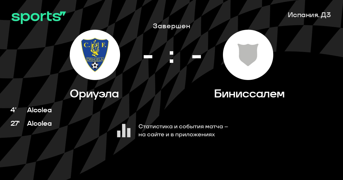 Пинья - Carrión Rodríguez, Garrido García, Верду, García Vallejo - Sanz Ortiz, Carrasco Rodríguez, Piñero Gabarrón, Alcolea Martínez - Brieva Primo, González RoblesЗапасные: Rocamora Belmonte, Pereira Navalón, Ochoa López, Cortés Montoro, Amado Gutiérrez
