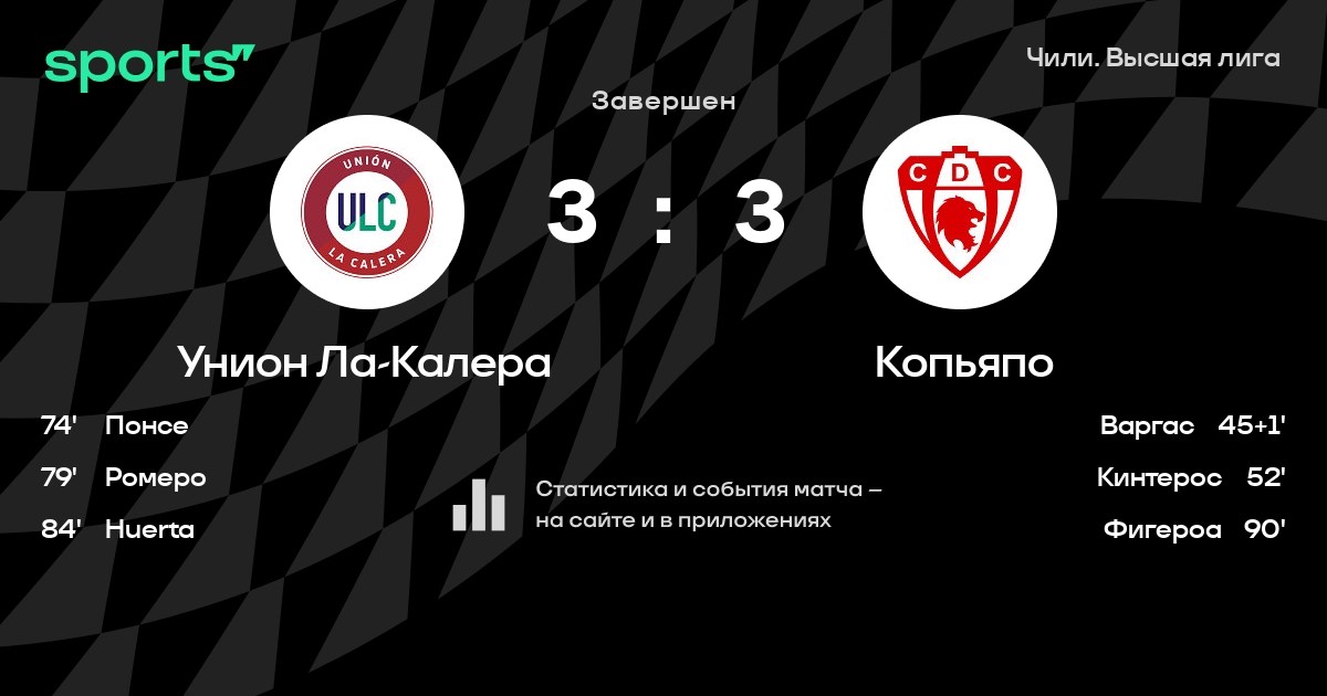 Результат прошлой игры в турнире «Примера»: Унион Ла-Калера – Палестино 2:1. После 20 туров Унион Ла-Калера набирает 19 очков и занимает 15 место в турнире. Лучший бомбардир команды – Эммануэль Джильотти: он забил 4 в 24 матчах. Унион Ла-Калера пропускает в 5 последних матчах в турнире «Примера». В последних 5 играх Унион Ла-Калера забивает 5 голов. В последних 5 играх Унион Ла-Калера пропускает 7 голов.