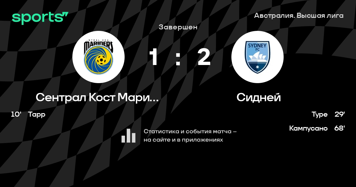 Результат прошлой игры в турнире «Лига А»: Сентрал Кост Маринерс – Мельбурн Сити 0:0. После 6 туров Сентрал Кост Маринерс набирает 8 очков и занимает 8 место в турнире. Лучший бомбардир команды – Алфи Маккалмонт: он забил 2 в 6 матчах. Сидней имеет в активе больше всех побед в турнире – 4. В последних 5 играх Сентрал Кост Маринерс забивает 4 голов. В последних 5 играх Сентрал Кост Маринерс пропускает 6 голов.