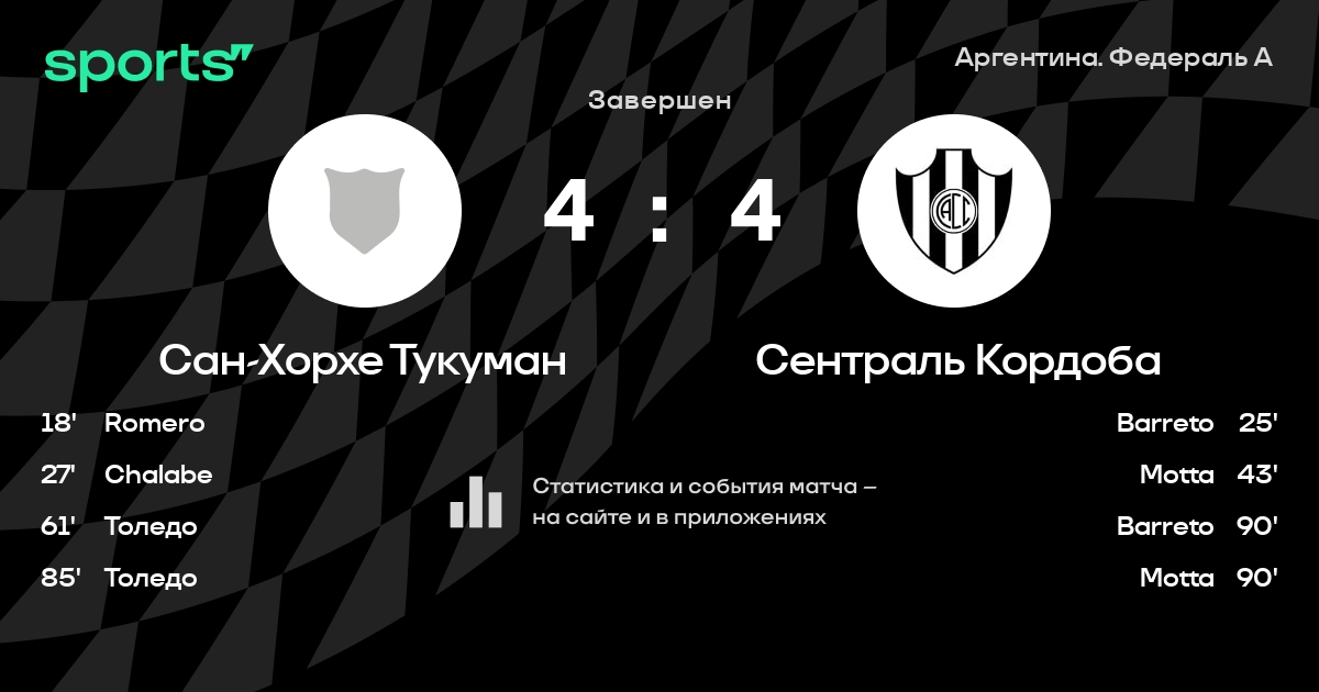 Сан-Хорхе Тукуман - Сентраль Кордоба: статистика матча