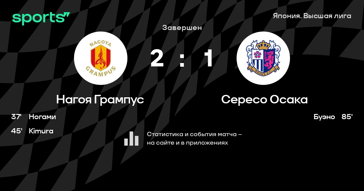 Нагоя Грампус – Сересо Осака: Нагоя Грампус побеждает в 6 последних очных матчах дома в турнире «Джей-лига 1»