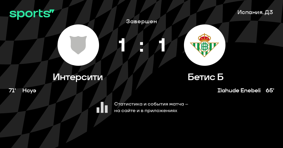 Результат прошлой игры в турнире «Первый дивизион RFEF»: Альхесирас – Интерсити 1:0. После 20 туров Интерсити набирает 15 очков и занимает 20 место в турнире. Лучший бомбардир команды – Юрген Локадия: он забил 5 в 12 матчах. Интерсити не может выиграть в 6 последних матчах в рамках турнира «Первый дивизион RFEF». Интерсити пропускает в 12 последних матчах в турнире «Первый дивизион RFEF». В последних 5 играх Интерсити забивает 4 голов. В последних 5 играх Интерсити пропускает 7 голов.