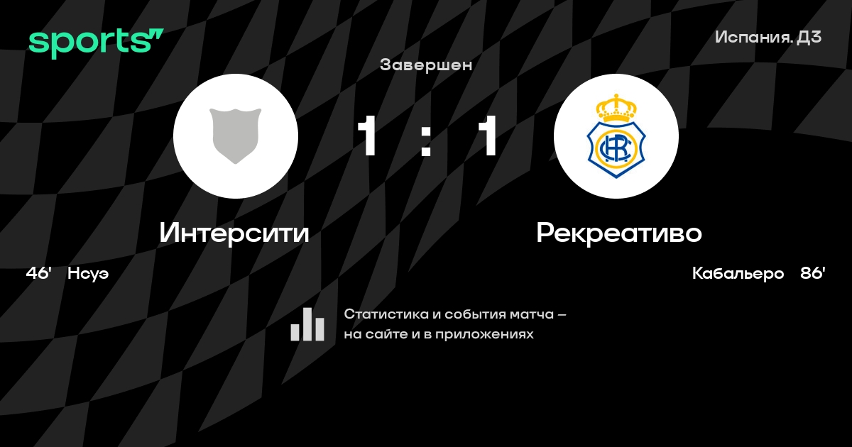 Интерсити – Рекреативо: Рекреативо побеждает в 3 последних очных матчах