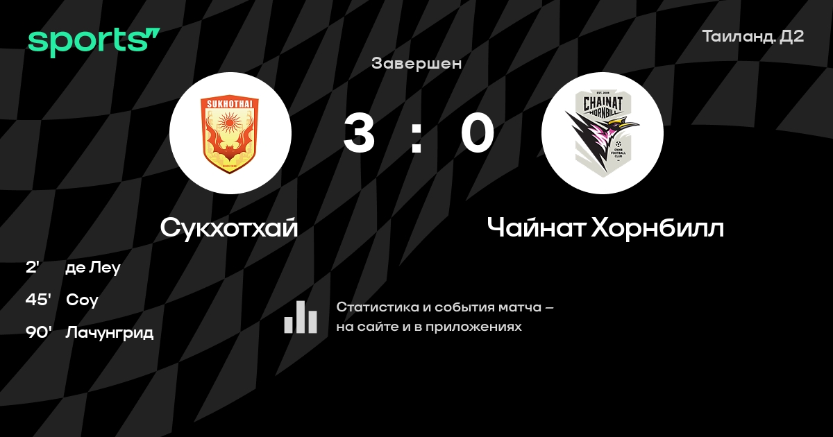 Сукхотхай – Чайнат Хорнбилл: Сукхотхай забивает в 6 из 7 последних матчей против этого соперника