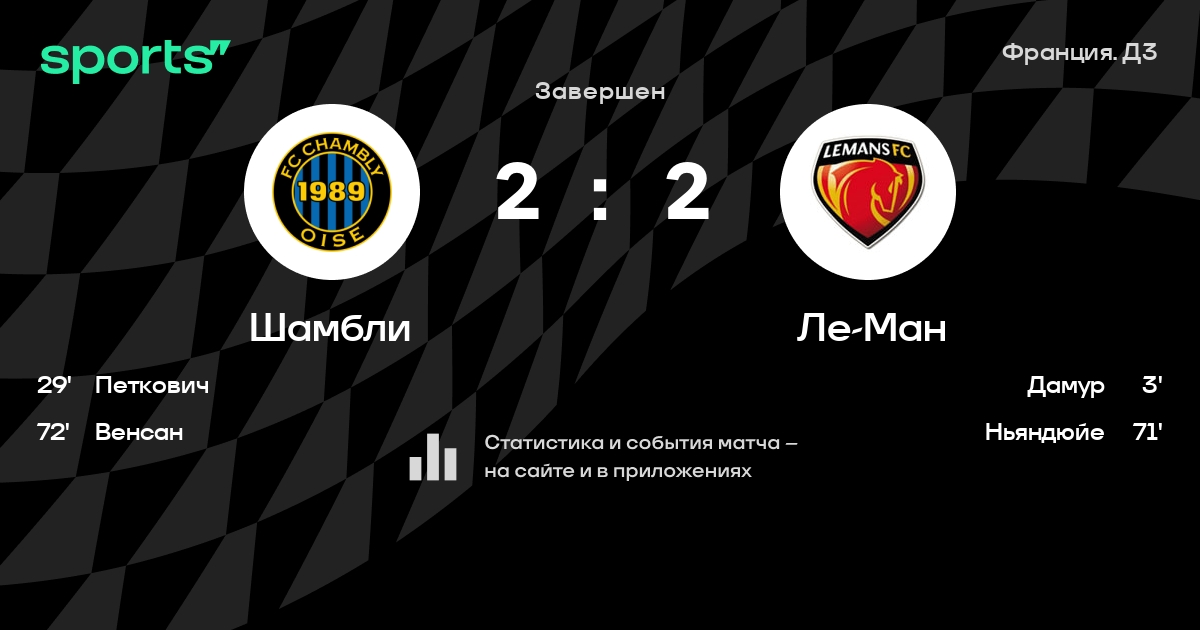 Шамбли – Ле-Ман: Ле-Ман не проигрывает в 5 последних матчах против этого соперника