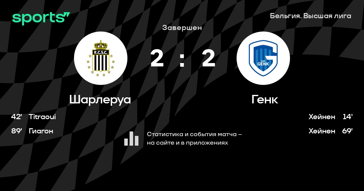 | 12 | Шарлеруа | 19 | 5 | 6 | 8 | 21 | 25 | -4 | 21 | ||
